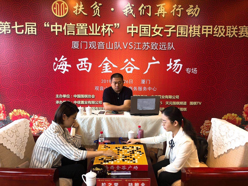 都說魚離不開水,魚兒上了陸,結(jié)果一望便知。這不,上周末,美麗鷺島就又上演了一場魚兒登陸的好戲。5月26日,第7屆中信置業(yè)杯中國女子圍棋甲級聯(lián)賽第3輪(廈門觀音山隊主場 VS 江蘇致遠(yuǎn)隊)“海西金谷廣場”專場在位于廈門觀音山海岸的觀音山總部企業(yè)商務(wù)服務(wù)中心戰(zhàn)罷。廈門觀音山隊家門口以2-1鎖定勝局,成功挑落女子圍甲六冠王——衛(wèi)冕冠軍江蘇隊。