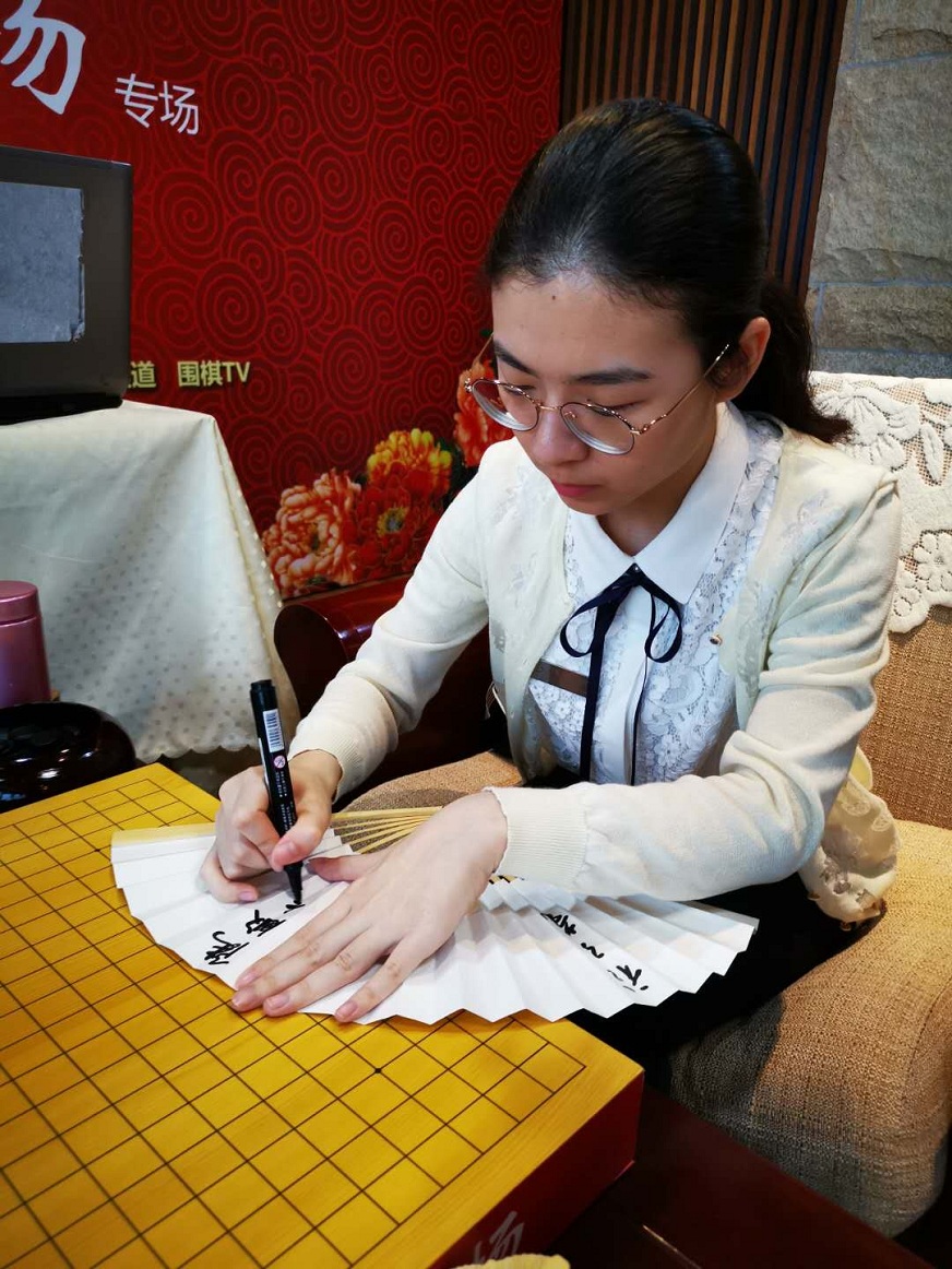 為棋迷們簽名的“小陸姐姐”