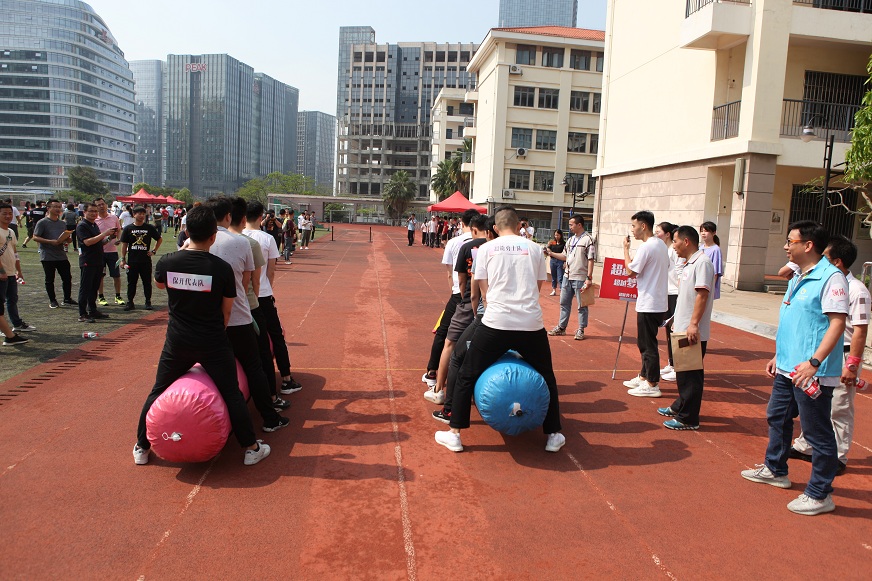 各隊(duì)的側(cè)重點(diǎn)各不相同。有的隊(duì)伍提前排兵布陣,并在關(guān)鍵時(shí)刻改變戰(zhàn)略,穩(wěn)中求勝。有的隊(duì)伍本著勇往直前的硬漢作風(fēng),風(fēng)風(fēng)火火的殺出一條血路。當(dāng)然其中也不乏嬌俏可人的娘子軍們,巾幗不讓須眉,在團(tuán)隊(duì)配合上力挽狂瀾。當(dāng)然也有的隊(duì)伍玩得很盡興,熱門項(xiàng)目“旱地龍舟”“無敵風(fēng)火輪”“不倒森林”“同心擊鼓”“合力建塔”“袋鼠跳跳跳”統(tǒng)統(tǒng)不落下。