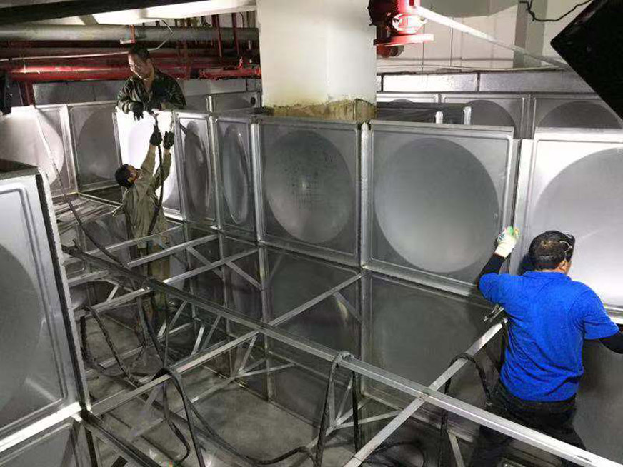 7月23凌晨0點施工人員進場開始拆卸水箱、管道。現(xiàn)場工作人員與施工人員連軸轉(zhuǎn),分班休息,確保工程不停工,經(jīng)過48小時努力,最終在25日凌晨0點,新的水箱安裝工程完成,經(jīng)清洗水箱和管道,并對水質(zhì)進行檢測合格后,恢復(fù)供水,改造工程完成。