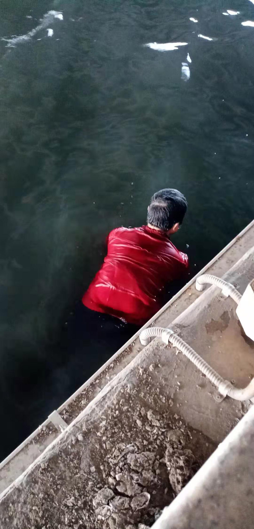2019年10月15日上午6時(shí)22分左右,我司派駐廈門雅興船艇有限公司保安員吳仁財(cái)同志跟往常一樣在筼筜湖邊值守巡查(他的工作職責(zé)是負(fù)責(zé)筼筜湖岸上設(shè)施的安全和現(xiàn)場(chǎng)秩序的維護(hù)),當(dāng)他走到白鷺洲公園白鷺女神處經(jīng)過(guò)橋下處時(shí),湖面上一個(gè)紅色物體不停浮動(dòng),職業(yè)的敏感性引起了吳仁財(cái)?shù)母叨染X(jué),仔細(xì)一看,原來(lái)是一著紅色衣服的女人,臉朝水面,右手在石壁上不停比劃,慢慢地向著湖水深處移動(dòng)。
