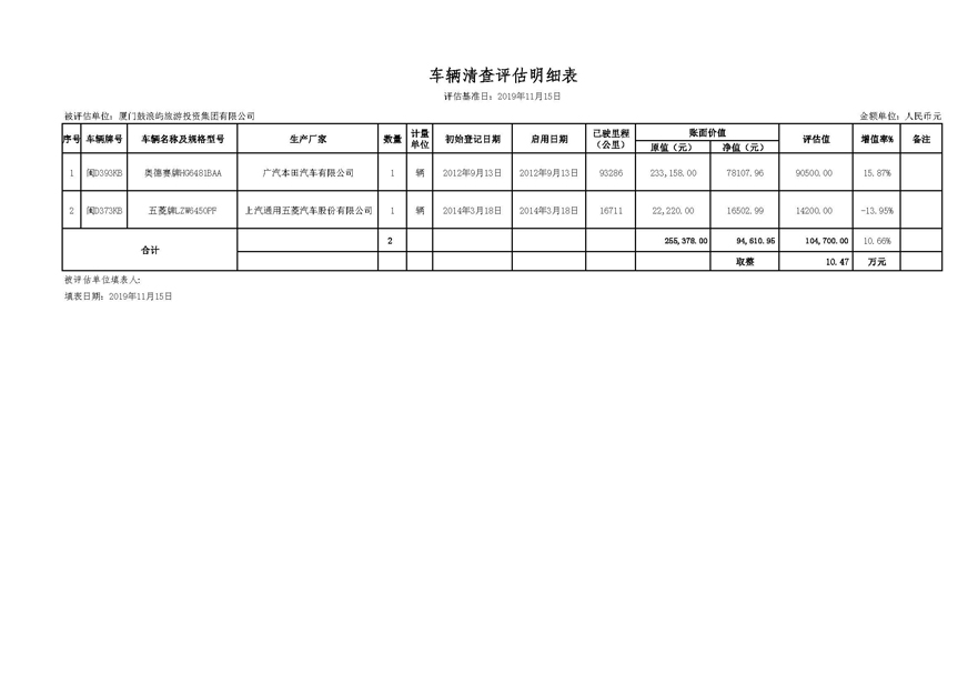 4.《鼓浪嶼旅游集團車輛清查評估明細(xì)表》。