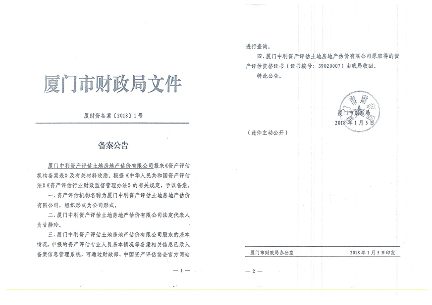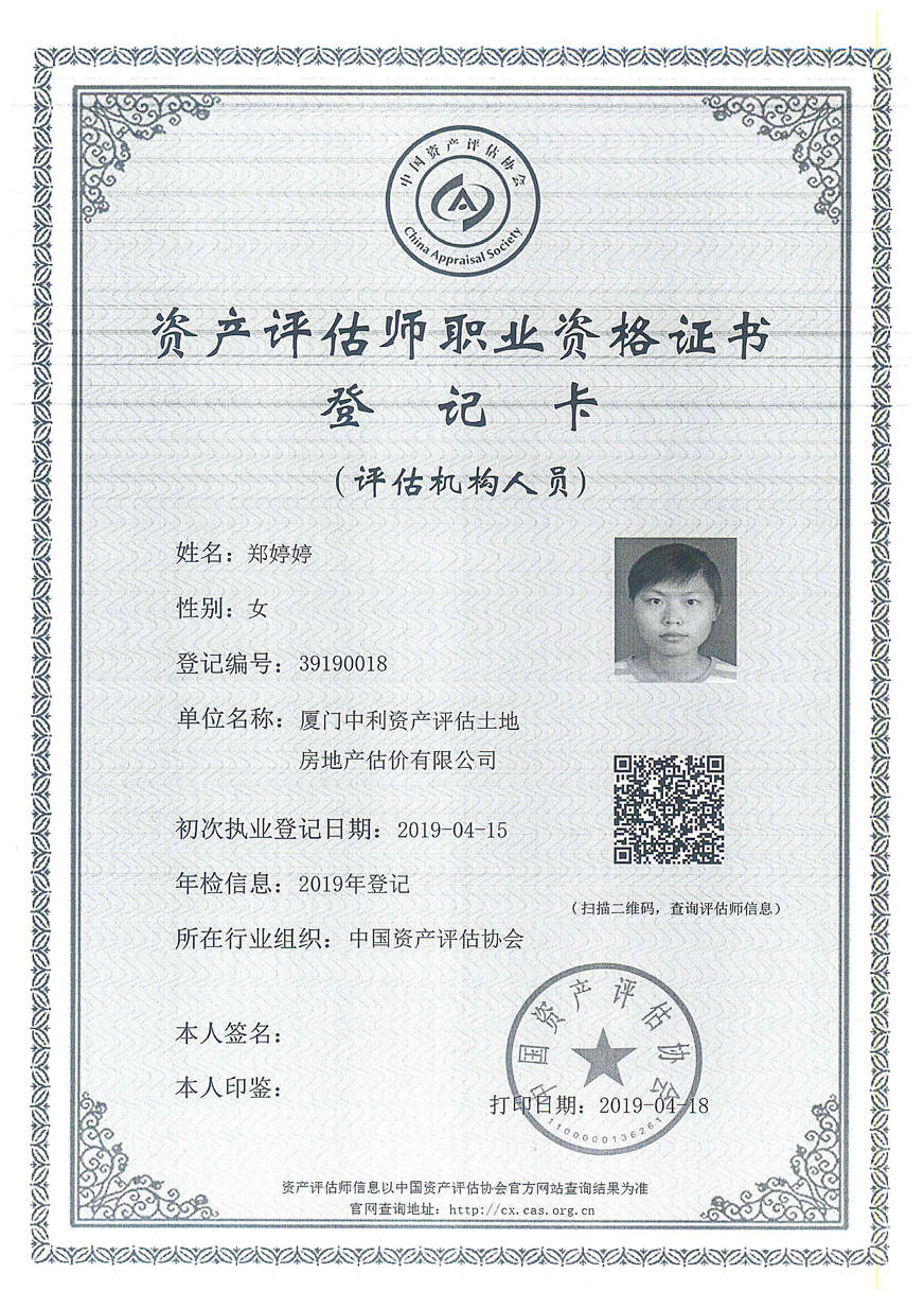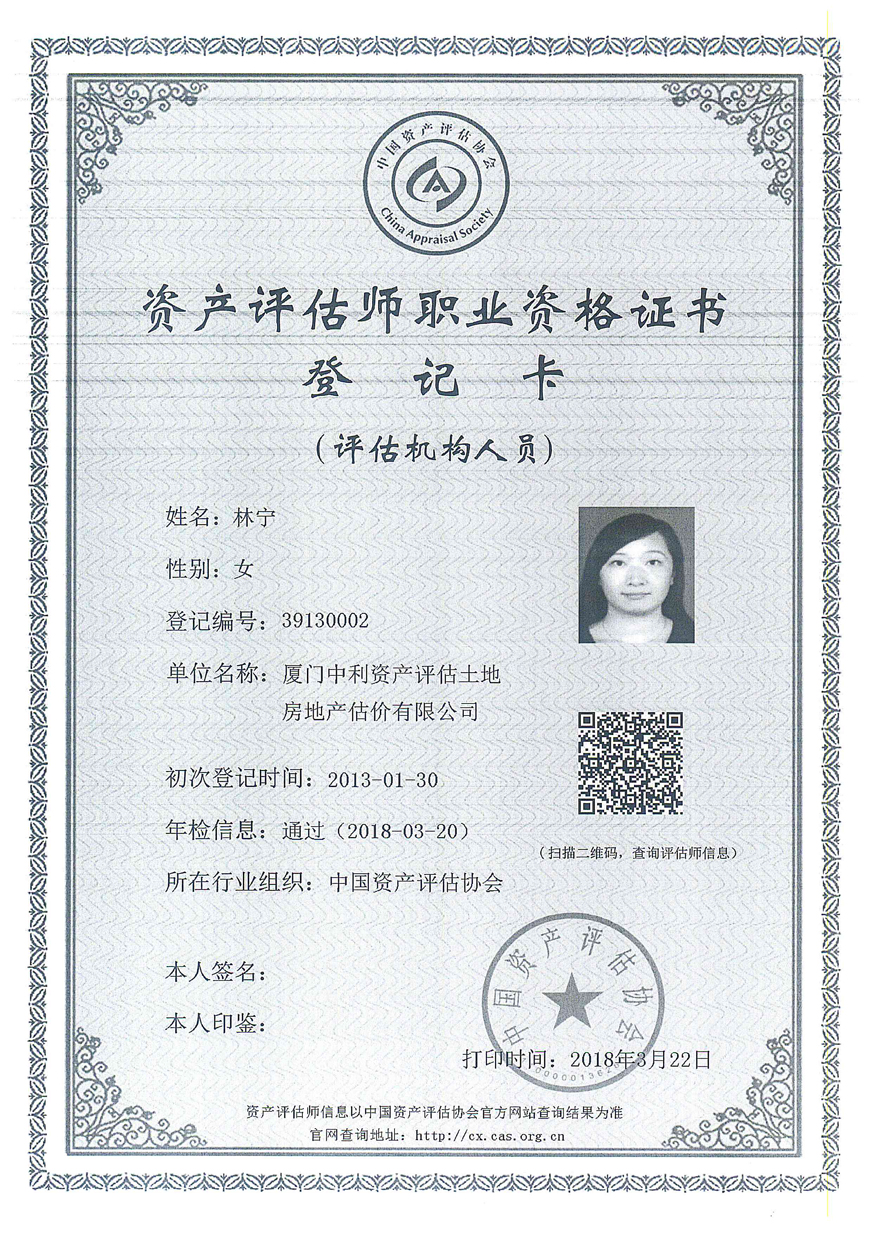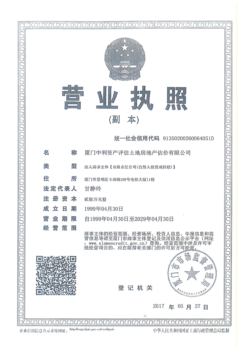 3. 廈門中利資產(chǎn)評估土地房地產(chǎn)估價有限公司營業(yè)執(zhí)照、評估資格證書復(fù)印件及注冊評估師林寧、鄭婷婷資質(zhì)證書復(fù)印件;