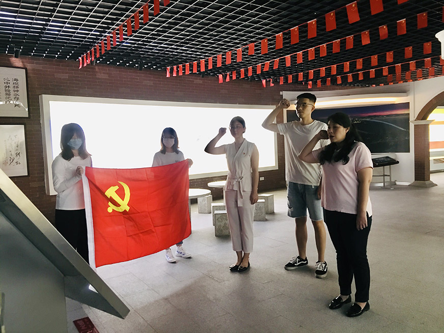 結(jié)束參觀后,全體黨員面對黨旗舉行莊嚴的重溫入黨誓詞儀式。黨員在海堤紀念館前,面對鮮艷的黨旗,重溫入黨誓詞,洪亮的宣誓讓黨員同志們重憶初心,加固信念堡壘。