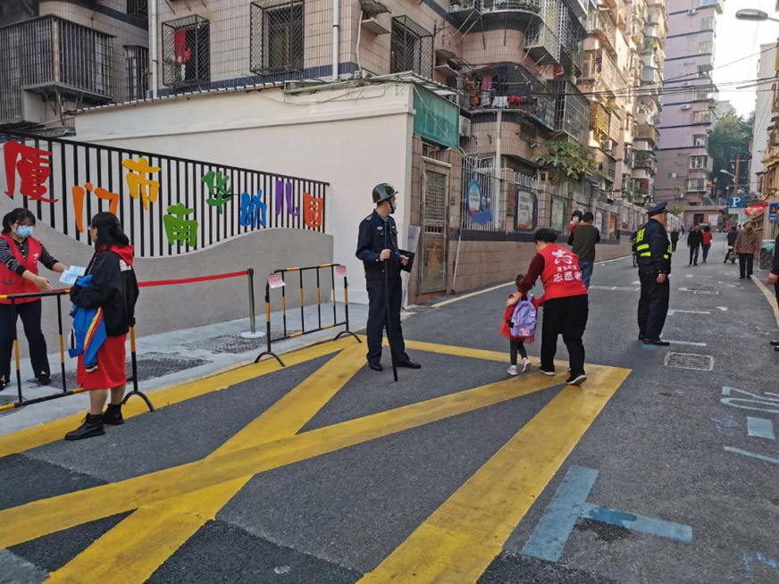 一大早,思明交警、碧山派出所民警、社區(qū)志愿者們便已經(jīng)到達現(xiàn)場,共同助力南華幼兒園開園,成為現(xiàn)場一道亮麗的風(fēng)景線。