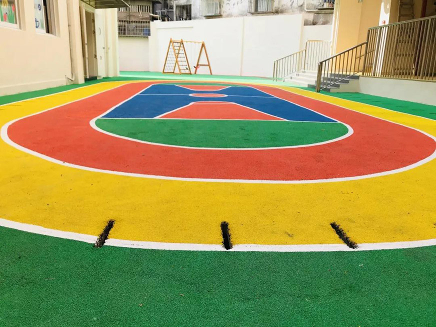 ▲ 南華把“彩虹”畫在的操場上,更顯活潑。寬闊的場地使孩子們能接觸到新鮮的空氣,看見清澈的藍天與漂浮的白云。