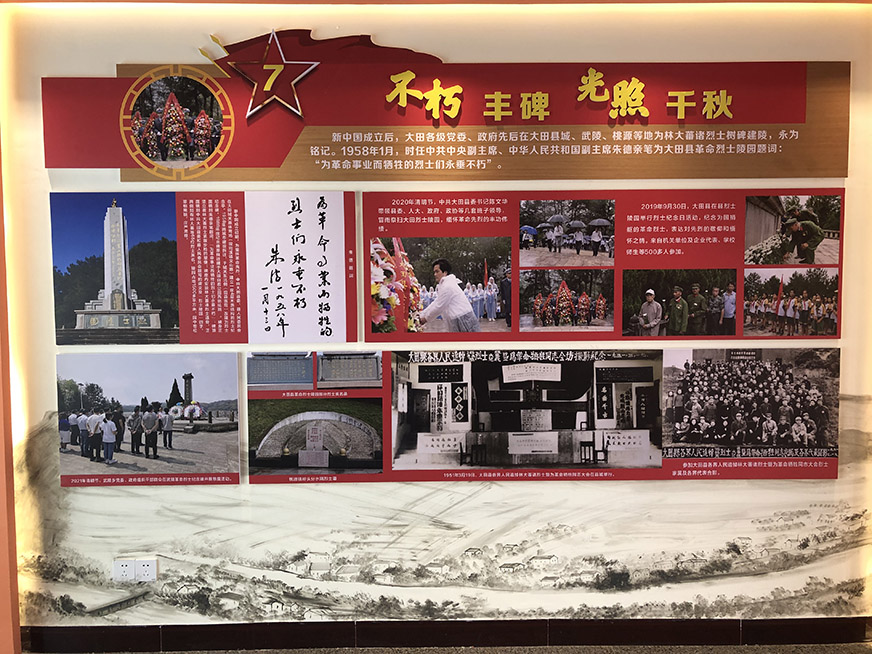 習(xí)近平總書記指出:“我們緬懷革命先烈,為的是繼承他們的遺志,發(fā)揚(yáng)他們的精神,不忘初心,牢記使命,在他們用生命和獻(xiàn)血開辟的道路上不懈奮斗、永遠(yuǎn)奮斗。”英雄已逝,精神永存。林大蕃為了革命事業(yè)和新中國的誕生壯烈犧牲,用熱血和生命鑄就了永恒的豐碑。敵人只能砍下他的頭顱,卻不能動(dòng)搖他的崇高信仰。他的事跡被后人傳頌,他的精神激勵(lì)著一代代大田兒女乃至新時(shí)代我們前仆后繼,砥礪前行。