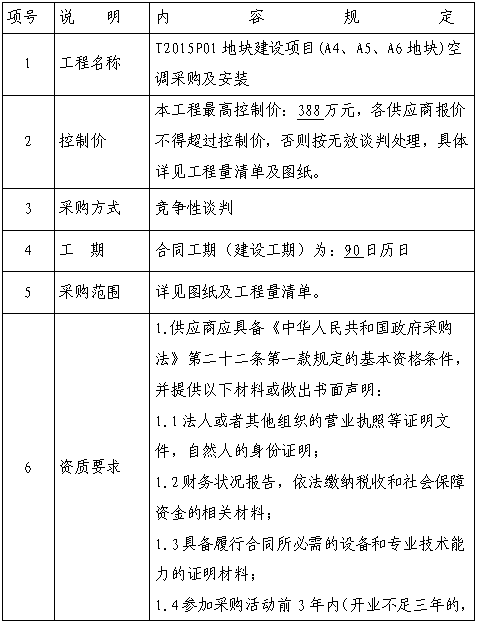 萬豐果業(yè)招標公告(T2015P01地塊建設(shè)項目A4、A5、A6地塊空調(diào)采購及安裝工程)