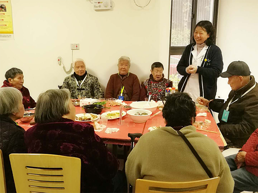 開飯時間到了,老人們都換上漂亮的新衣服,他們的臉上都洋溢著孩子般的笑容,行動方便的老人在護工的攙扶下來到了餐廳,大部分行動不便的老人安排在各個樓層用餐,由護士幫忙夾菜喂飯。公司所有員工全部到場為老人服務(wù),不論是在餐廳還是在樓層,到處都能看到員工忙碌的身影。為了讓老人更開心,公司還邀請部分家屬一起來陪伴老人吃年夜飯,讓親情在陪伴中得到交流,還有幾個可愛的小志愿者也前來服務(wù),更有趣的是,還有家屬把家里的寵物狗也帶過來了,為狗年增添幾分樂趣,為老人們添旺加福!整個場面喜慶洋洋,老人們特別得高興,臉上無一不掛滿了笑容。