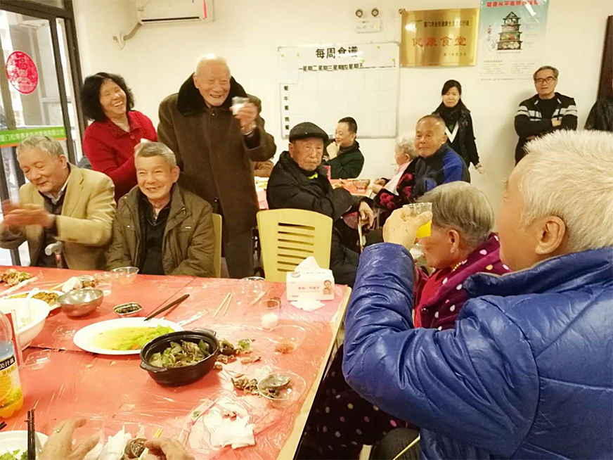 忙活了一天,廚房出菜了,樓層13桌的傳菜由護工負責(zé),一樓餐廳4桌的傳菜由后勤行政管理部門的姑娘小伙子負責(zé),大家開心地為我們公寓的長輩們服務(wù),獻上自己的愛心。一桌桌琳瑯滿目的菜,一個個穿梭忙碌的身影,為老人夾喜歡吃的菜,幫忙老人剝蝦、盛湯,跟老人們敘家常,今日的源泉山莊仿佛成了“源泉大飯店”,與飯店不同的是,大伙兒比酒店服務(wù)員還貼心,就像自己的家。看著老人們開心地吃著,大家都露出了會心的笑容,一些爺爺奶奶也高興得舉起飲料跟其他老人干杯,跟身邊的“服務(wù)員”干杯,大家互道新的一年健康平安,幸??鞓?!富有涵義的十道菜,寓意十全十美,溫馨的年夜飯隨著最后一道餃子上桌后,在大家的祝福聲中圓滿結(jié)束。我們祝愿天下老人新春快樂!健康長壽!祝愿所有員工開心幸福!好運長伴!我們的年夜飯,您說好不好,歡迎您明年一起來參加。