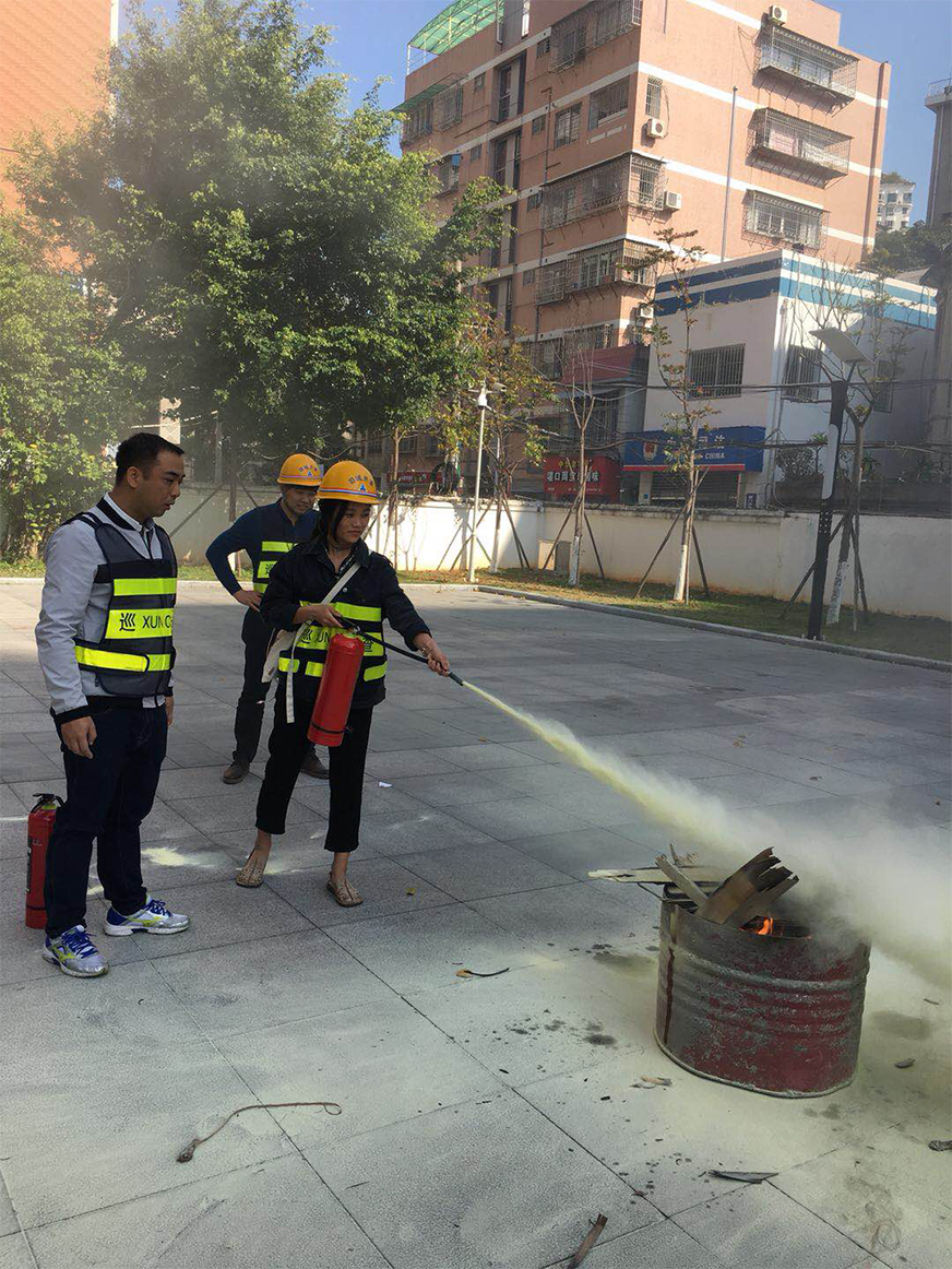 演練開始,首先是對干粉滅火器的操作使用,隊員們采取兩兩分組,搖瓶,除封,拔銷,滅火,沉著冷靜,有條不紊,基本做到一次性完成滅火任務(wù),這對于平時很少實戰(zhàn)經(jīng)驗的員工來說實屬難得。