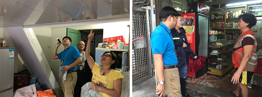 工作人員巡查危險房屋及慰問住戶