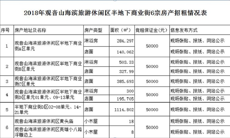 思明區(qū)觀音山半地下商業(yè)街6宗房產(chǎn)公開招租信息