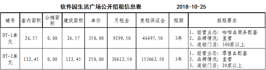 招租要求:詳見附表(軟件園生活廣場(chǎng)公開招租信息表)