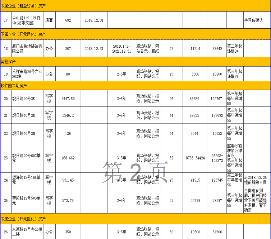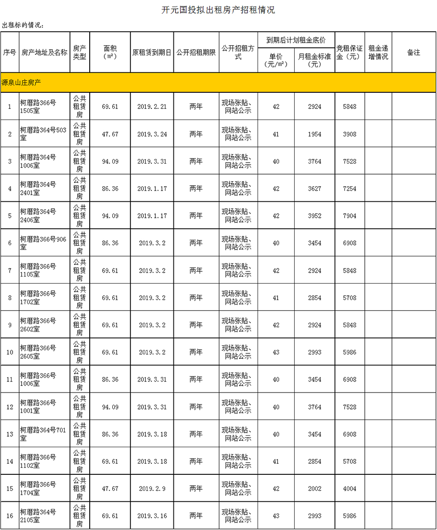 開元國投2019年1-3月到期、空置房產(chǎn)公開招租