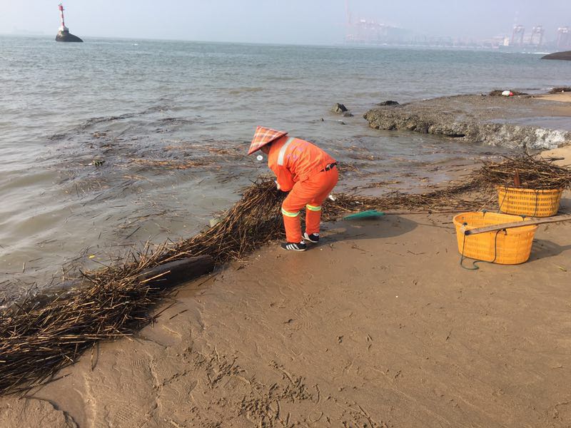 正月初三,天氣出現(xiàn)變化。一陣陣風(fēng)來,轄區(qū)內(nèi)掉滿樹葉、花朵。公司立即啟動應(yīng)急響應(yīng),加大機(jī)掃車、保潔員對落葉密集地方的巡回清掃,加派轉(zhuǎn)運(yùn)車輛進(jìn)行收集轉(zhuǎn)運(yùn),每日平均出動掃路車60車次。隨著沙灘上海漂垃圾的增多,公司也啟動應(yīng)急預(yù)案,采用水線作業(yè),快速清理了各類海漂垃圾245噸。