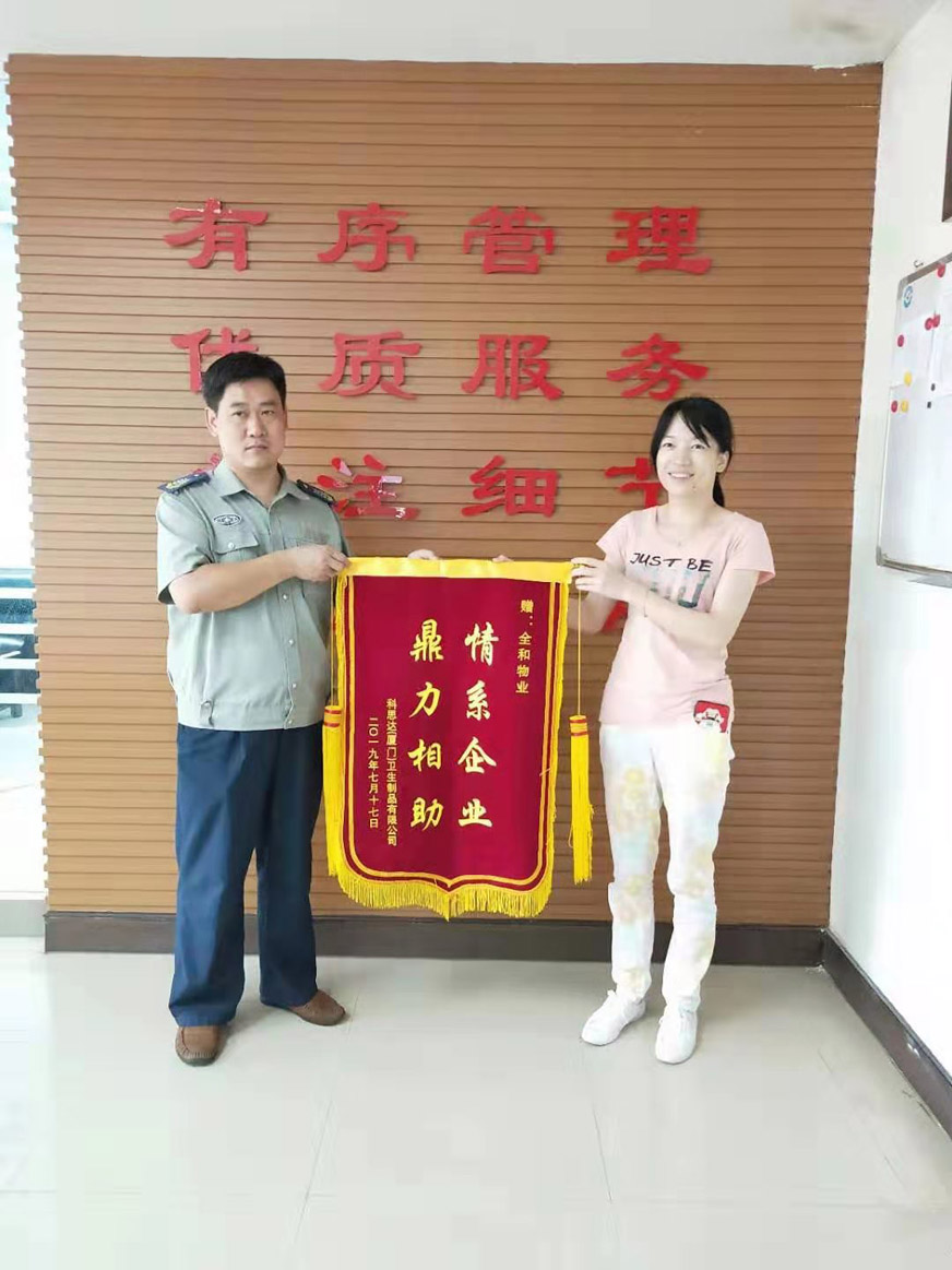 廈門市全和物業(yè)管理有限公司同安工業(yè)集中區(qū)思明園服務中心的勇士們處置及時,臨危不亂,為業(yè)主挽回了巨大損失,獲得業(yè)主的高度贊揚與認可,被送來“情系企業(yè),鼎力相助”的錦旗。
