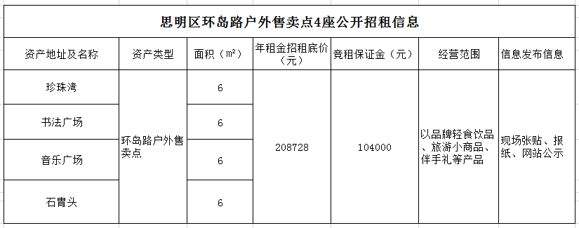 思明區(qū)環(huán)島路戶外售賣(mài)點(diǎn)4座公開(kāi)招租公告