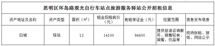 思明區(qū)環(huán)島路觀光自行車站點旅游服務驛站公開招租公告