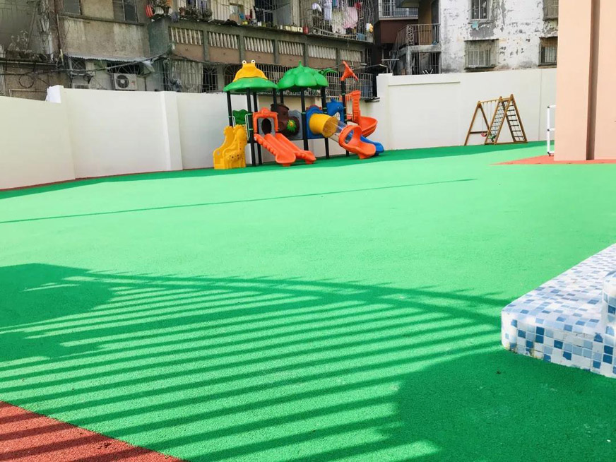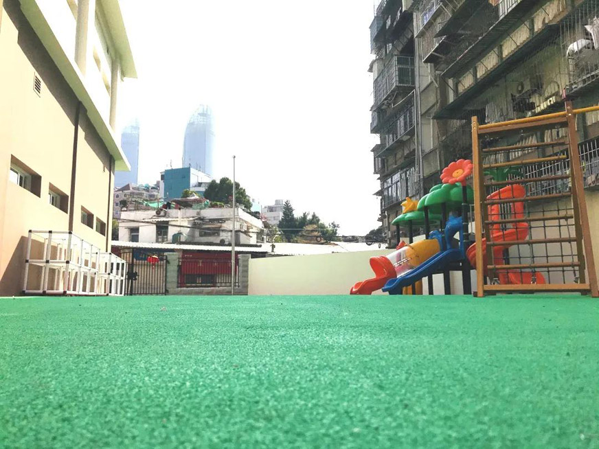 ▲ 南華把“彩虹”畫在的操場上,更顯活潑。寬闊的場地使孩子們能接觸到新鮮的空氣,看見清澈的藍天與漂浮的白云。