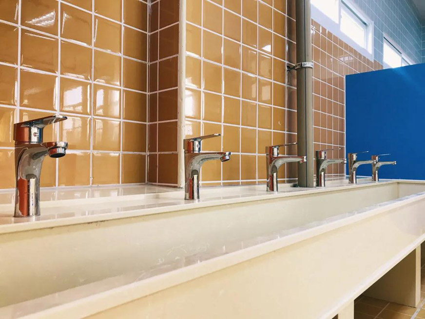 ▲ 衛(wèi)生間色彩上,以米黃色為主,點綴其他色彩,給空間帶來溫暖干凈且不失靈動的效果。