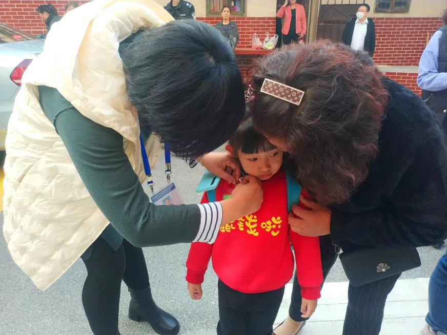 ▲書包擺放整齊,孩子們排排坐好,認(rèn)真的上起課。