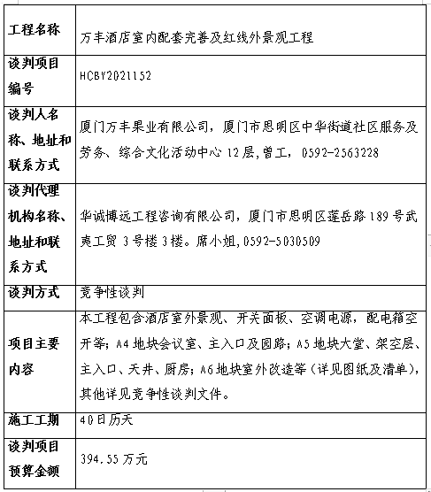 萬(wàn)豐酒店室內(nèi)配套完善及紅線外景觀工程