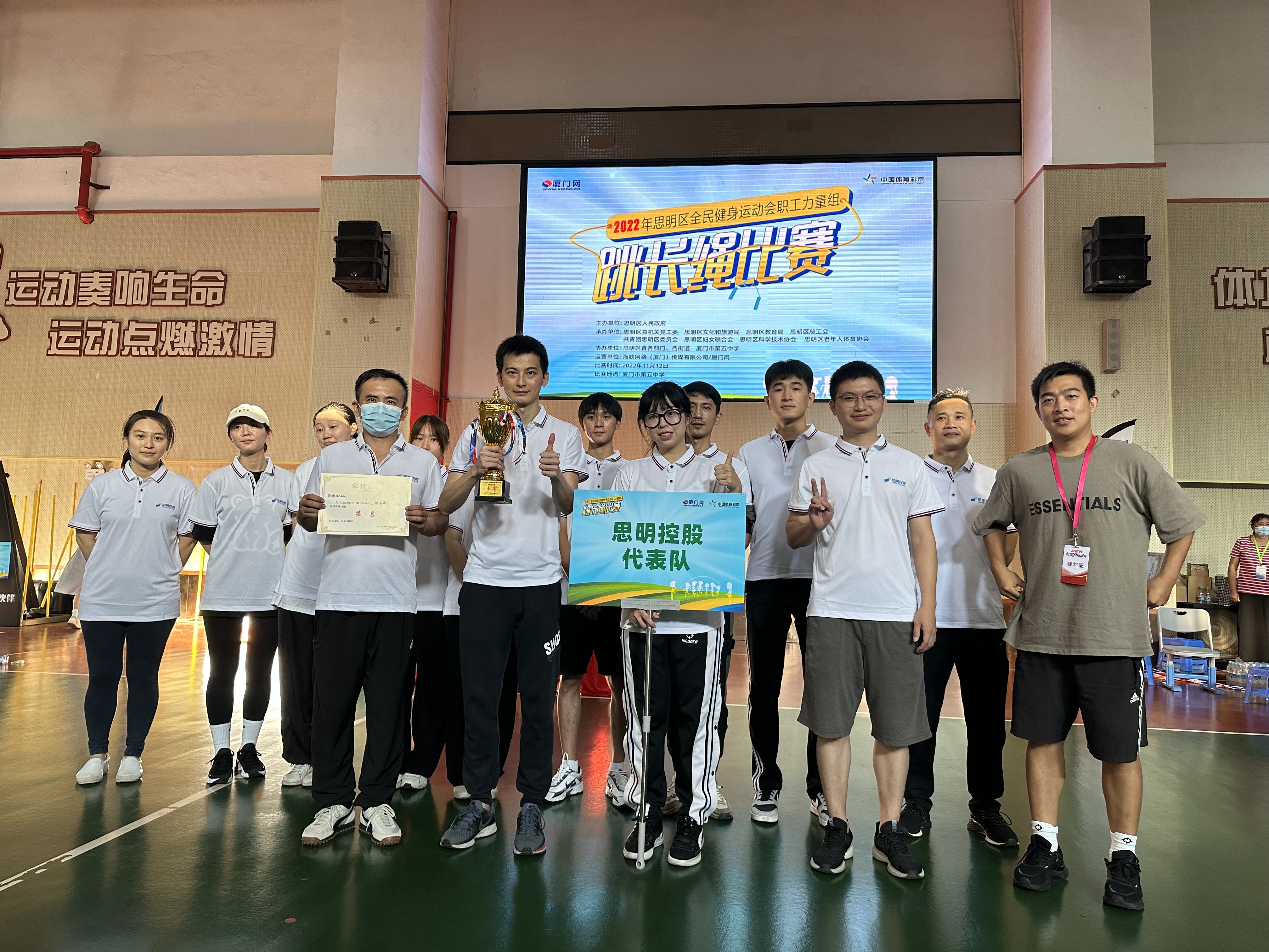 11月12日下午,2022年思明區(qū)全民健身運(yùn)動(dòng)會(huì)職工跳長(zhǎng)繩競(jìng)賽在廈門五中籃球場(chǎng)舉行,這是運(yùn)動(dòng)會(huì)職工力量組的第二項(xiàng)比賽。思明控股集團(tuán)由15名運(yùn)動(dòng)員代表組成的參賽隊(duì),齊心協(xié)力,越戰(zhàn)越勇,繼8月7日拔河比賽捧起冠軍獎(jiǎng)杯后,又捧起了跳長(zhǎng)繩競(jìng)賽的季軍獎(jiǎng)杯。